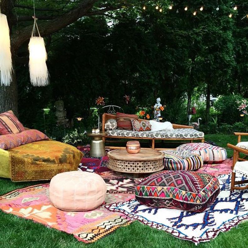 Muebles y accesorios de jardín hechos principalmente de materiales naturales como el yute, el mimbre, el algodón y la teca. Los muebles de rejilla y de bambú también son tendencia. La cuerda es otro de los materiales estrella